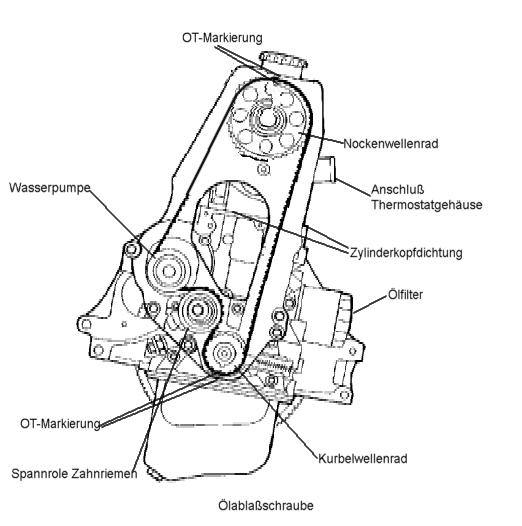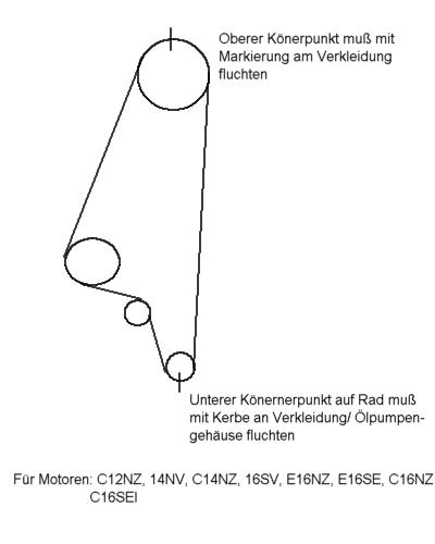 Die Markierungen sind bei abgebauten Verkeildungen und entfernter Keilriemenscheibe ersichtlich.